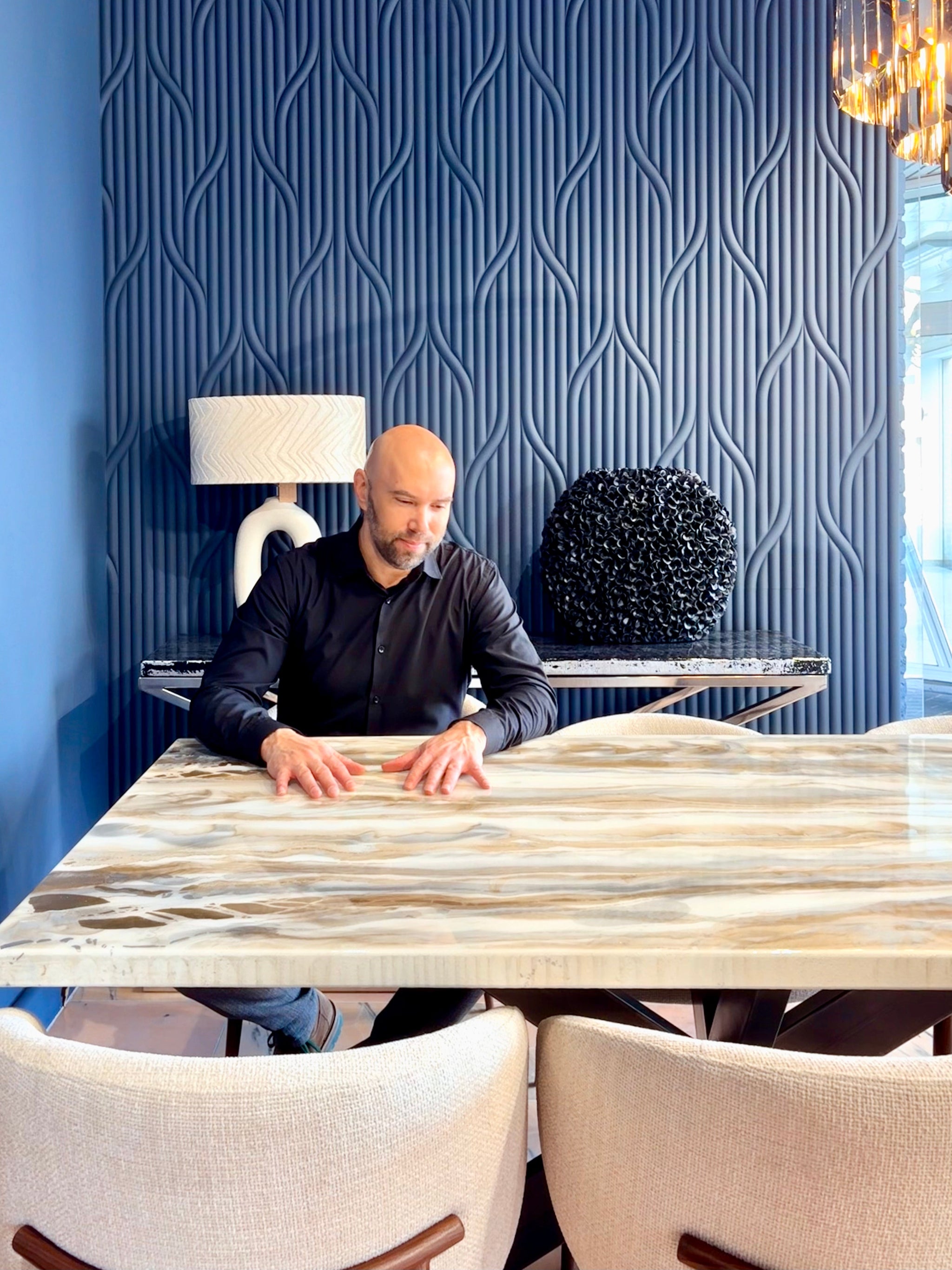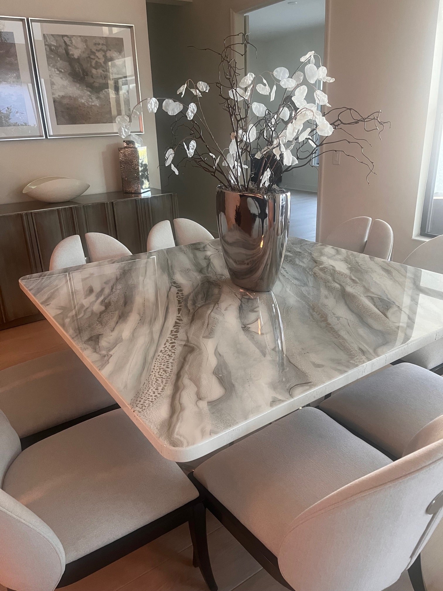 Gold River & Grey Marble Effect Resin Dining Table (Custom)