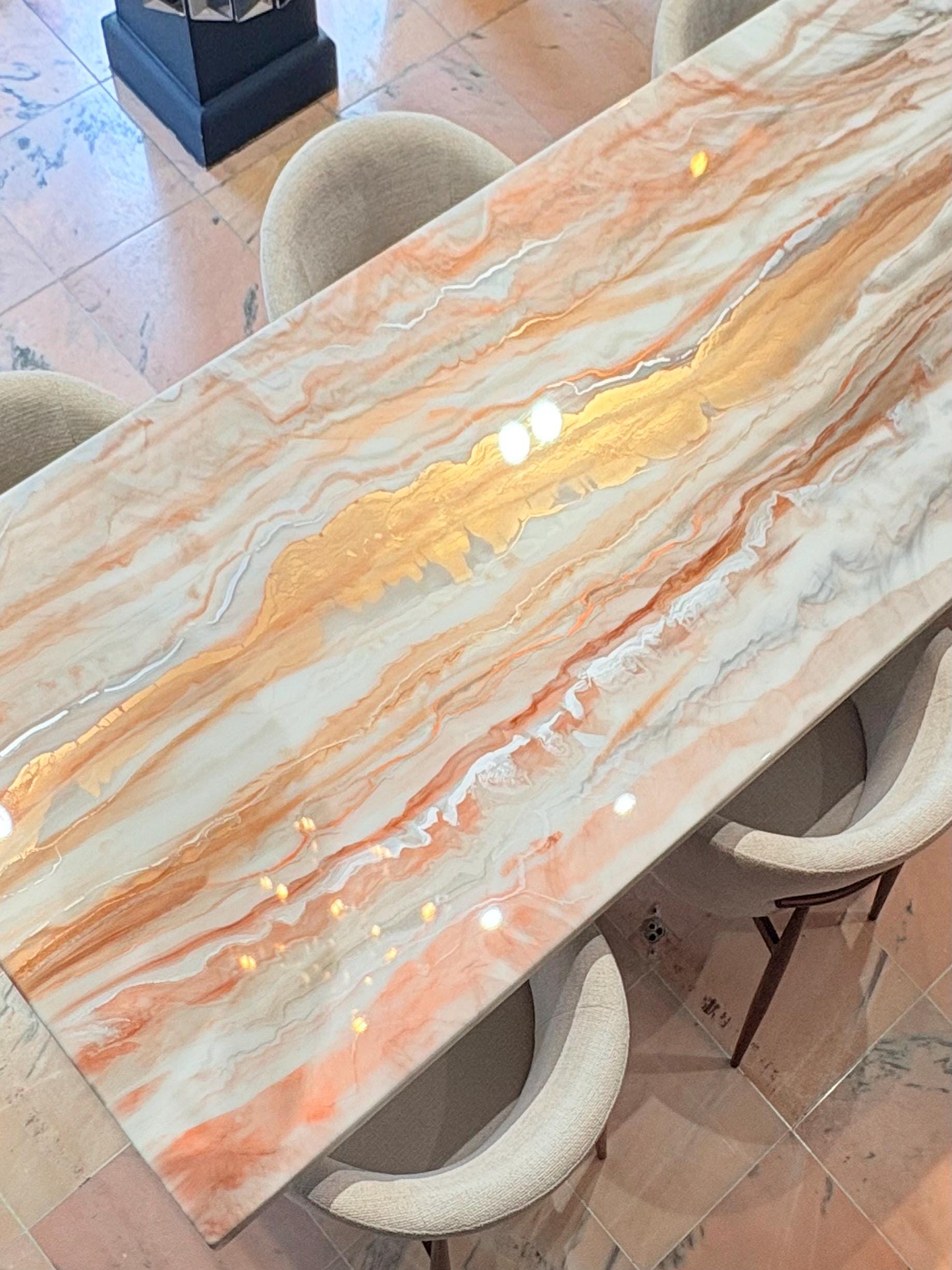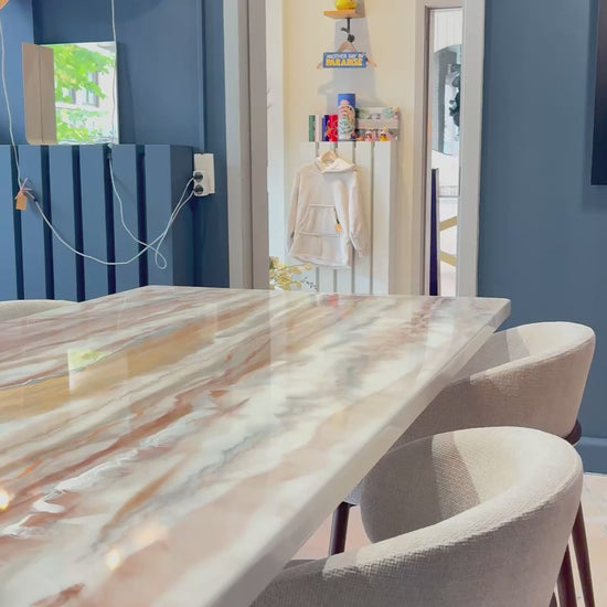 Rose Gold Marble Effect Dining Table (Handmade, Custom Size)