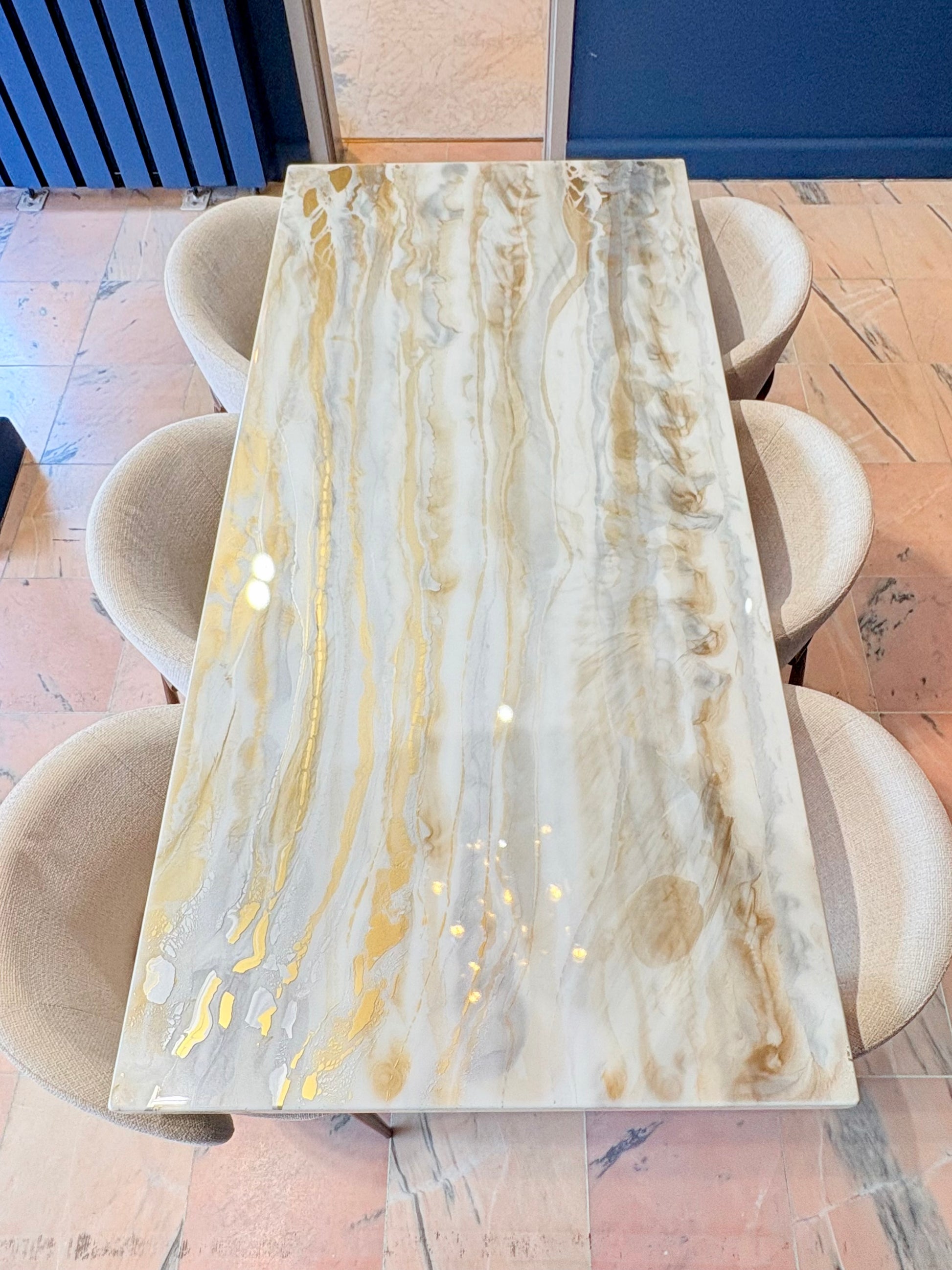 100% Custom Made and Handmade Dining Table – Unique Gold - Silver - Pouring Art - Marble Design