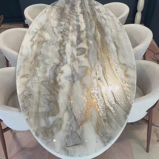 Oval Gold & Silver Marble Effect Dining Table (Custom)