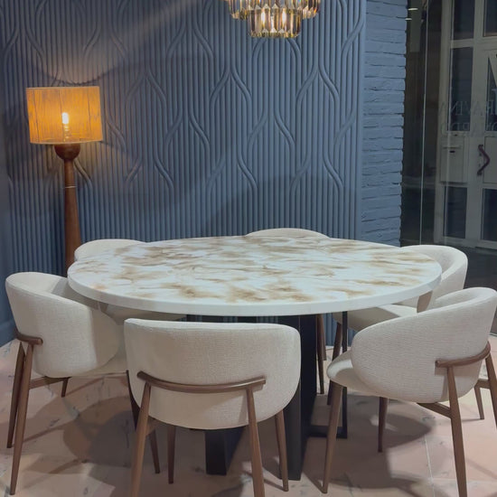 Round Gold Cloud Marble Dining Table | Handcrafted Luxury Epoxy Resin Art